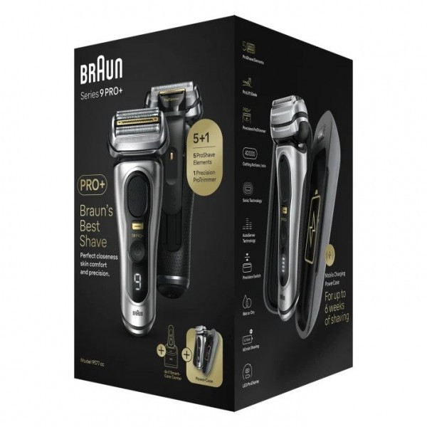 دستگاه شارژ و شستشو: ریش تراش براون مدل 9577cc Pro Plus همراه با یک ایستگاه شستشو و شارژ عرضه میشود. این ایستگاه به شما این امکان را میدهد که ریش تراش خود را به راحتی تمیز و شارژ کنید. این ویژگی باعث افزایش طول عمر دستگاه میشود و از رشد باکتریها و آلودگیها جلوگیری میکند.