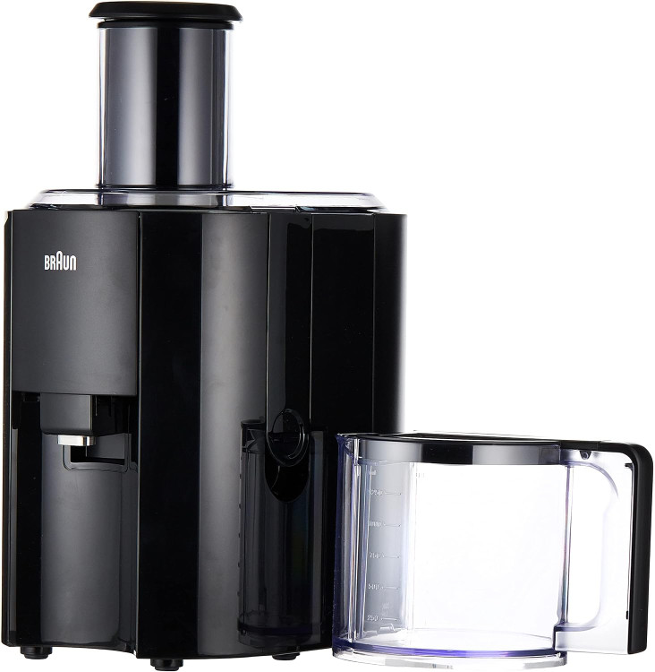 آبمیوه گیری براون دارای مخزن تفاله میوه در قسمت پشت دستگاه بوده و خروجی های حاصل از میوه ها را در درون خود جای می دهد. ظرفیت مخزن تفاله دو لیتر بوده و می توان آن را به راحتی جدا کرد و شست و شو داد. ظرفیت مخزن آن 1.25 لیتر بوده و در دهانه خروجی آبمیوه قابلیت ضد چکه قرار داده شده است.