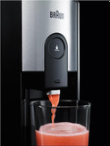 آبمیوه گیری براون دارای مخزن تفاله میوه در قسمت پشت دستگاه بوده و خروجی های حاصل از میوه ها را در درون خود جای می دهد. ظرفیت مخزن تفاله دو لیتر بوده و می توان آن را به راحتی جدا کرد و شست و شو داد. ظرفیت مخزن آن 1.25 لیتر بوده و در دهانه خروجی آبمیوه قابلیت ضد چکه قرار داده شده است.