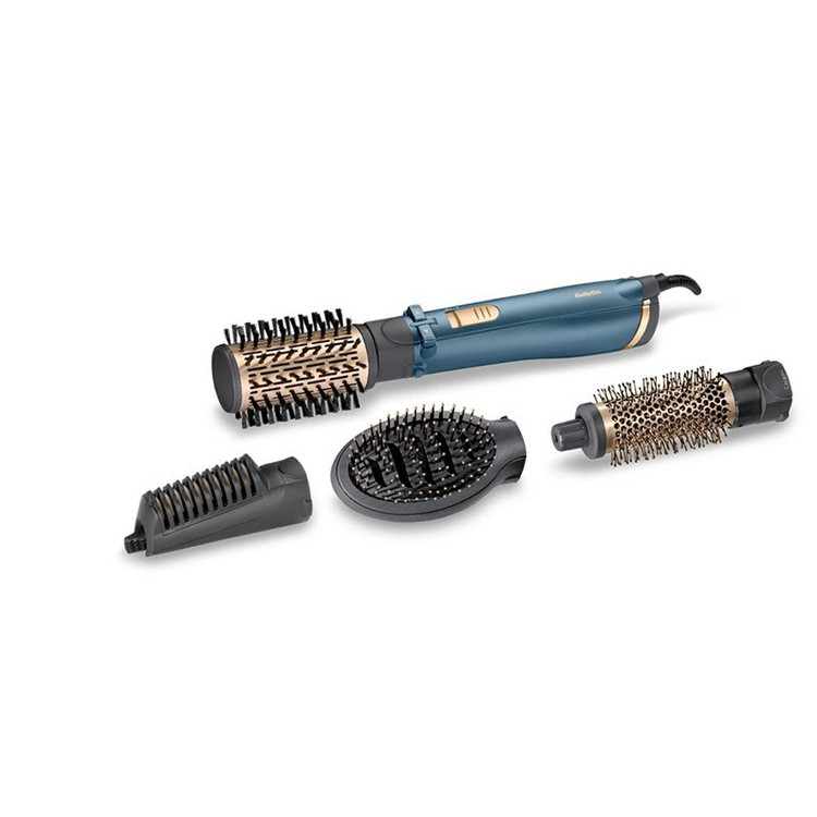 سشوار چرخشی بابلیس AS 965sde PLUS یکی دیگر از محصولات برند بابلیس است که با خرید آن، از داشتن هرگونه برس، سشوار و حالت دهنده دیگر بینیاز میشوید. سشوار چرخشی AS 965sde PLUS دارای 4 سری شامل: برس گرد 50 میلیمتری با موهای نرم و برس 50میلیتری با موهای متوسط سرامیکی، برس حرارتی تخت و برس حرارتی سرامیکی که کارایی مشابه اتو مو را دارد . کاربر میتواند از آنها برای براشینگ، حالتدادن، صافکردن و برسکشیدن موها استفاده کند. سشوار چرخشی بابلیس AS 965sde PLUS دارای موتور 1000 وات DC بوده که مناسب مصرف خانگی است. از دیگر ویژگیهای سشوار Babyliss AS 965 sde plus میتوان به فناوری تولید یون، باد سرد، تنظیم درجه حرارت در 2 حالت اشاره نمود.. با وجود قابلیت تولید یون موها وز نمیشوند و وجود برس سرامیکی plus از آسیبدیدن موها جلوگیری میکند وجود این قابلیت در خوش حالت شدن موها تاثیر بسزایی دارد.