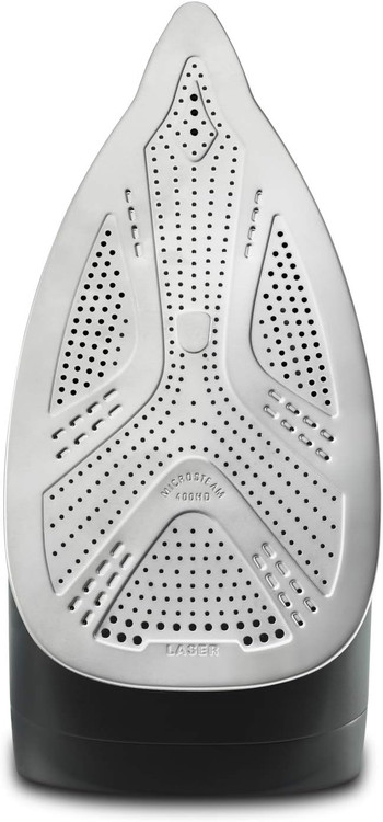 - کفی MicroSteam 400 HD Laser با نقاط بسیار ریز خروج بخار (micro holes) و نوک دقیق برای رسیدن به مناطق دشوار مانند یقهها، دکمهها و درزها.