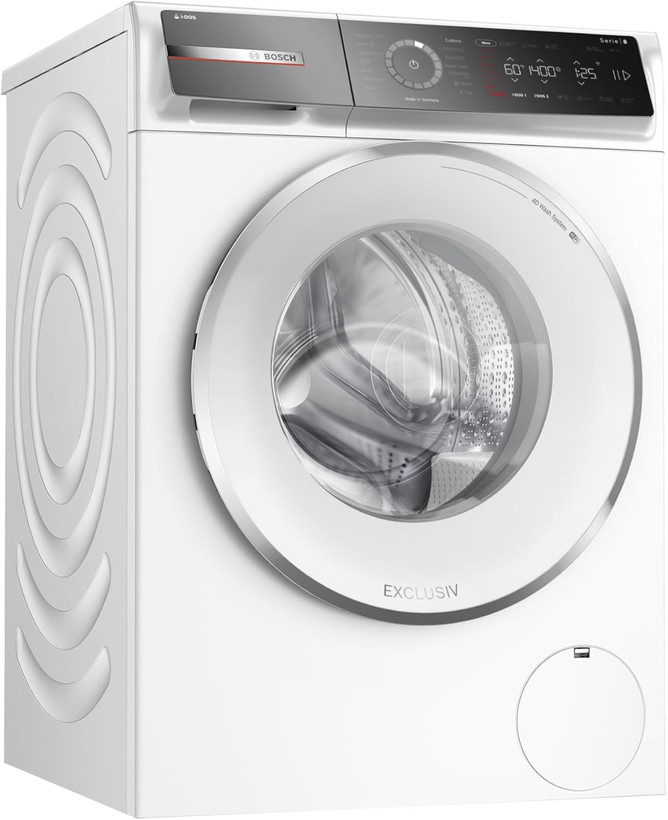 دارد (سیستم شستوشوی Bosch «۴D Wash» به این صورت عمل میکند که آب و مواد شوینده از پیش با هم ترکیب شده و سپس با اسپری مستقیم روی لباسها جریان مییابد تا حتی در حالت بار کامل، نفوذ بهتر شوینده به الیاف انجام شود و نتیجه پاکیزگی بهتری حاصل گردد.)