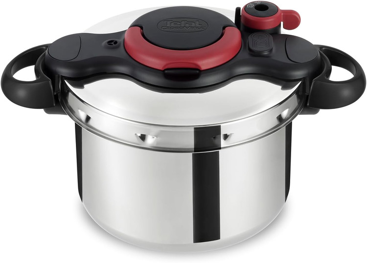 یکی از ظروف پخت وپز بسیار مهم در هر خانه و آشپزخانه، زودپز است. در واقع وقتی که یک مهمان ناخوانده برای شما می آید و وقت کمی برای درست کردن غذا دارید بهترین انتخاب برای سرعت درست کردن غذا زودپز است. زودپز با آزاد نکردن بخار آب درون محفظه خود، فشار را بالا می برد. این باعث می شود آب در دمای بالاتری بجوشد و این دمای بالاتر باعث می شود که غذا سریع تر بپزد. البته زودپز خواص های دیگری هم دارد که یکی دیگر ویژگی های زودپز می توان به خوش طعم ماندن غذا و حفظ خواص آن اشاره کرد. زودپز 9 لیتری Tefal (تفال) مدل Clipso Minut Easy با پوششی ضخیم و ضد زنگ غذاهای شما را 2 برابر سریع تر از حالت معمول آماده می سازد. زودپز تفال دارای یک سبد بخارپز تمام استیل بوده و به شما این امکان را می دهد که با قرار دادن سبد درون زودپز خیلی سریع غذایی سالم و سرشار از ویتامین را بخارپز کنید. که این ویژگی برای افرادی که رژیم دارند و به سلامت موادغذایی خود اهمیت می دهند بسیار مناسب است. این زودپز با 5 سیستم امنیتی که دارد شما را از نگرانی خارج نشدن بخار و منفجر شدن زودپز راحت می کند. درپوش این زودپز به گونه ای طراحی شده است که شما تنها با یک دست به سادگی در زودپز را باز و بسته می کنید. همچنین می توان این زودپز را در ماشین ظرفشویی نیز شست.