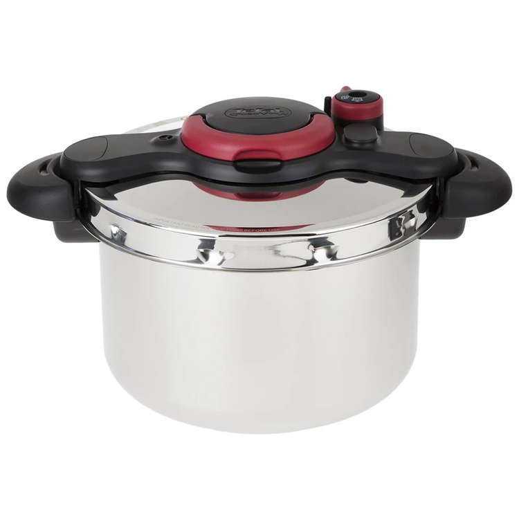 یکی از ظروف پخت وپز بسیار مهم در هر خانه و آشپزخانه، زودپز است. در واقع وقتی که یک مهمان ناخوانده برای شما می آید و وقت کمی برای درست کردن غذا دارید بهترین انتخاب برای سرعت درست کردن غذا زودپز است. زودپز با آزاد نکردن بخار آب درون محفظه خود، فشار را بالا می برد. این باعث می شود آب در دمای بالاتری بجوشد و این دمای بالاتر باعث می شود که غذا سریع تر بپزد. البته زودپز خواص های دیگری هم دارد که یکی دیگر ویژگی های زودپز می توان به خوش طعم ماندن غذا و حفظ خواص آن اشاره کرد. زودپز 9 لیتری Tefal (تفال) مدل Clipso Minut Easy با پوششی ضخیم و ضد زنگ غذاهای شما را 2 برابر سریع تر از حالت معمول آماده می سازد. زودپز تفال دارای یک سبد بخارپز تمام استیل بوده و به شما این امکان را می دهد که با قرار دادن سبد درون زودپز خیلی سریع غذایی سالم و سرشار از ویتامین را بخارپز کنید. که این ویژگی برای افرادی که رژیم دارند و به سلامت موادغذایی خود اهمیت می دهند بسیار مناسب است. این زودپز با 5 سیستم امنیتی که دارد شما را از نگرانی خارج نشدن بخار و منفجر شدن زودپز راحت می کند. درپوش این زودپز به گونه ای طراحی شده است که شما تنها با یک دست به سادگی در زودپز را باز و بسته می کنید. همچنین می توان این زودپز را در ماشین ظرفشویی نیز شست.