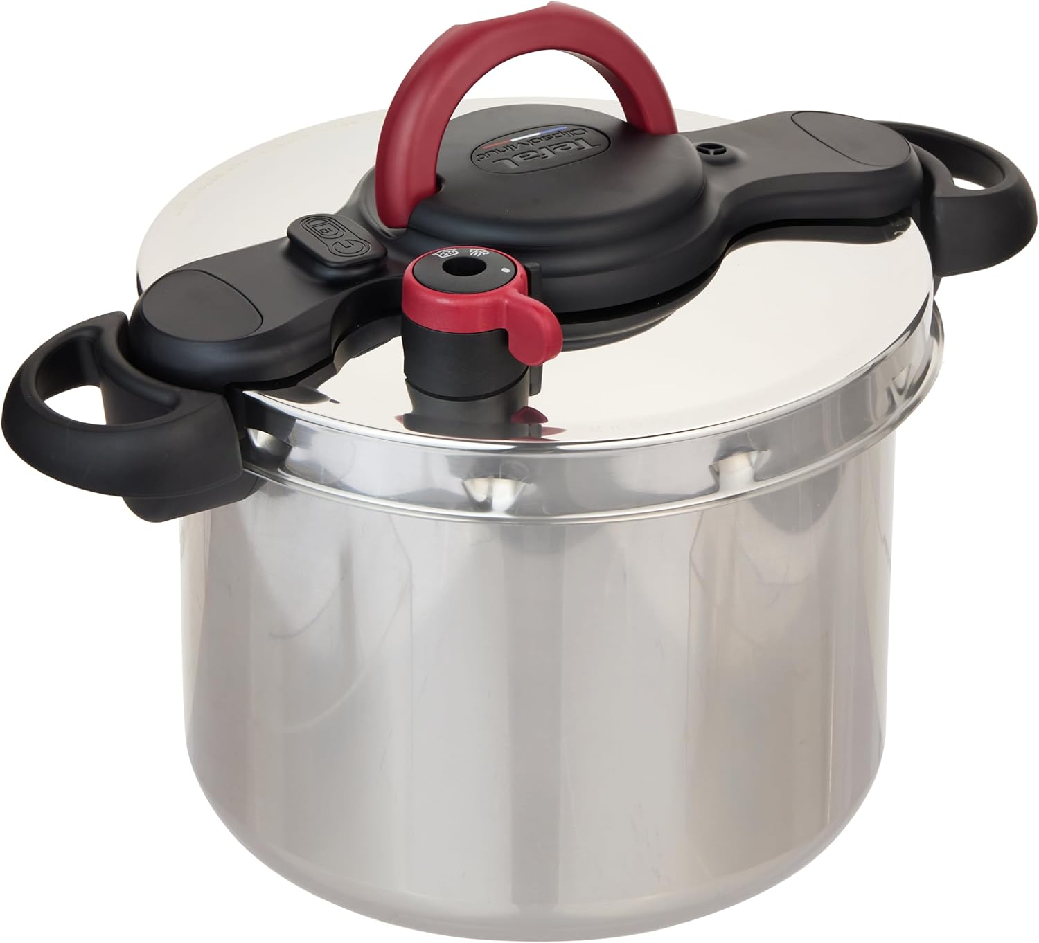 یکی از ظروف پخت وپز بسیار مهم در هر خانه و آشپزخانه، زودپز است. در واقع وقتی که یک مهمان ناخوانده برای شما می آید و وقت کمی برای درست کردن غذا دارید بهترین انتخاب برای سرعت درست کردن غذا زودپز است. زودپز با آزاد نکردن بخار آب درون محفظه خود، فشار را بالا می برد. این باعث می شود آب در دمای بالاتری بجوشد و این دمای بالاتر باعث می شود که غذا سریع تر بپزد. البته زودپز خواص های دیگری هم دارد که یکی دیگر ویژگی های زودپز می توان به خوش طعم ماندن غذا و حفظ خواص آن اشاره کرد. زودپز 9 لیتری Tefal (تفال) مدل Clipso Minut Easy با پوششی ضخیم و ضد زنگ غذاهای شما را 2 برابر سریع تر از حالت معمول آماده می سازد. زودپز تفال دارای یک سبد بخارپز تمام استیل بوده و به شما این امکان را می دهد که با قرار دادن سبد درون زودپز خیلی سریع غذایی سالم و سرشار از ویتامین را بخارپز کنید. که این ویژگی برای افرادی که رژیم دارند و به سلامت موادغذایی خود اهمیت می دهند بسیار مناسب است. این زودپز با 5 سیستم امنیتی که دارد شما را از نگرانی خارج نشدن بخار و منفجر شدن زودپز راحت می کند. درپوش این زودپز به گونه ای طراحی شده است که شما تنها با یک دست به سادگی در زودپز را باز و بسته می کنید. همچنین می توان این زودپز را در ماشین ظرفشویی نیز شست.